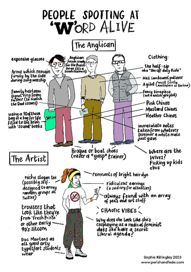 Sophie has been the cartoonist in residence at Word Alive for a few years, offering cheeky satirical insights into the niche world of Evangelicalism to keep conference attenders amused as they browse the Daily Briefing newsletter.